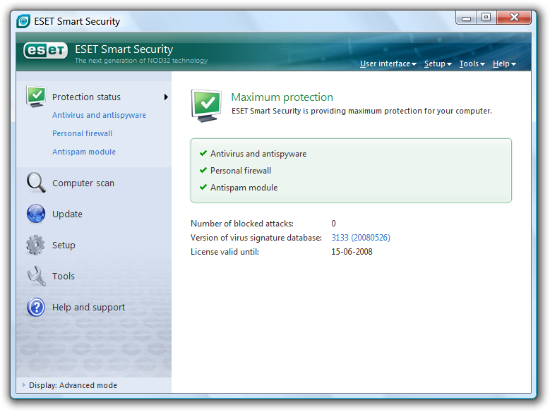 NOD32 Antivirus / ESET Internet Security / Eset Smart ... ESET Smart Security Ultimate protection for everyday web users, thanks to ESET's trademark best balance of detection, speed and usability. Stay safe from viruses and spyware. Stay protected from...